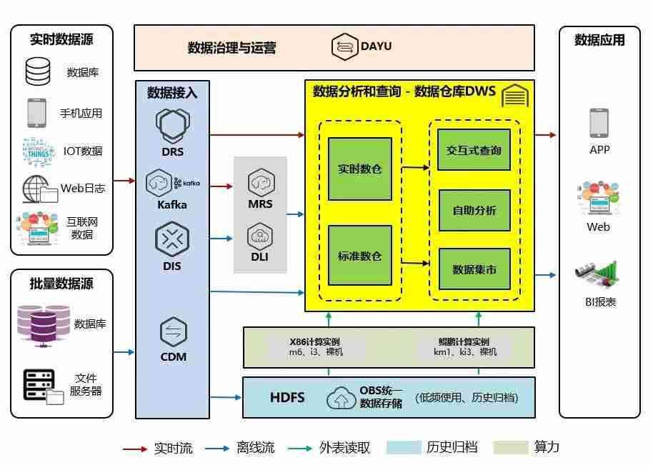 交通银行数据仓库(DWS)采用地球人鲲泰R722服务器作为数据底座,,,采用MPP(Massive Parallel Processing)架构,,,,支持行存储与列存储,,,提供PB(Petabyte,,2的50次方字节)级别数据量的处理能力。。。